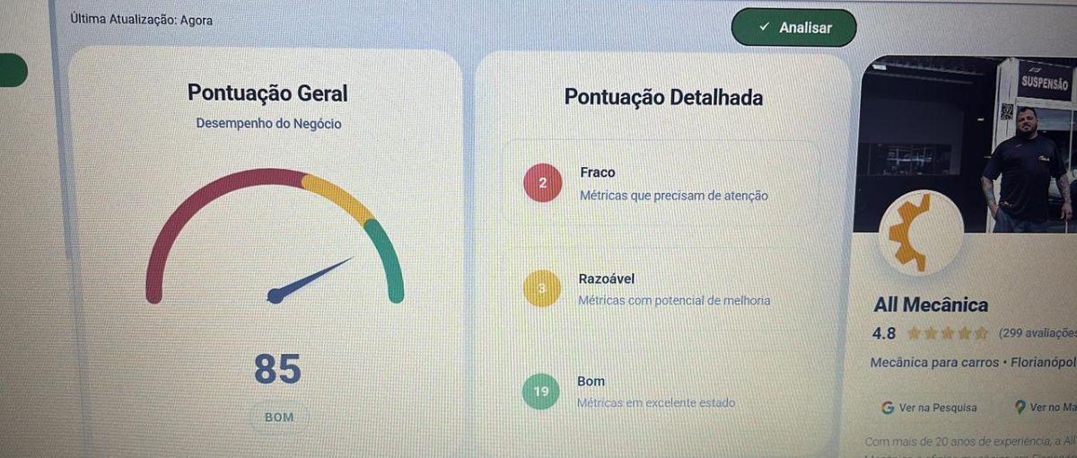 Aviso legal: Este site não é afiliado nem endossado pelo Google. É uma solução independente de análise e consultoria para otimização de presença digital local.